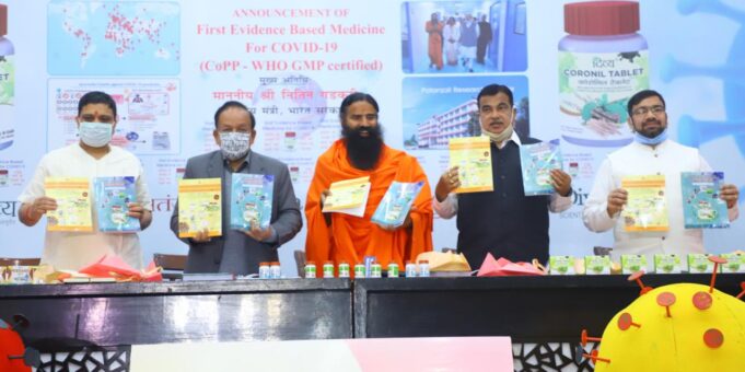 కరోనా నివారణకు పతంజలి ఆయుర్వేద సంస్థ రూపొందించిన ఔషధం ‘కొరోనల్’ను ప్రపంచ ఆరోగ్య సంస్థ(డబ్ల్యూ.హెచ్.వో) ఆమోదించిందని యోగా గురువు బాబా రామ్దేవ్ తెలిపారు. ఈ మేరకు పతంజలి రూపొందించిన ‘ఎవిడెన్స్ బేస్ట్ మెడిసెన్’ పరిశోధనా పత్రాన్ని రామ్దేవ్ బాబా శుక్రవారం ఢిల్లీలోని ఒక కార్యక్రమంలో కేంద్ర ఆరోగ్య మంత్రి డాక్టర్ హర్షవర్ధన్, మరో మంత్రి...