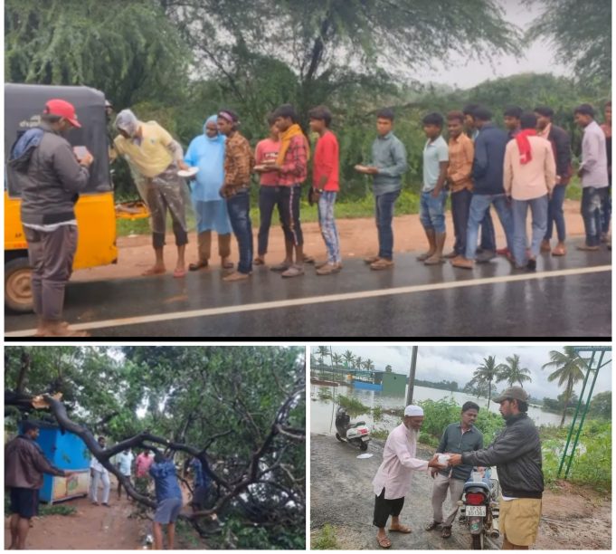 నివర్ తుఫాను కారణంగా నెల్లూరు గూడూరు మధ్య హైవేలో రోడ్డు దెబ్బతినడంతో రాకపోకలు నిలిచిపోయాయి. వరదలలో చిక్కుకుపోయిన ప్రయాణికులకు ఆర్.ఎస్.ఎస్ కార్యకర్తలు అండగా నిలిచారు. వారికి అల్పాహారం, బన్ను, బిస్కెట్ ప్యాకెట్ లు, పాలు, టీ ఏర్పాటు చేశారు.