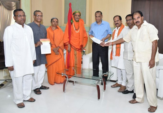 Vishwa Hindu Parishad (VHP) has submitted a memorandum to Sri.E.S.L.Narasimhan, Governor of Andhra Pradesh and Telangana, in RAJBHAVAN , Hyderabad on Saturday, requesting him to safeguard the sanctity of Tirumala Tirupati.
