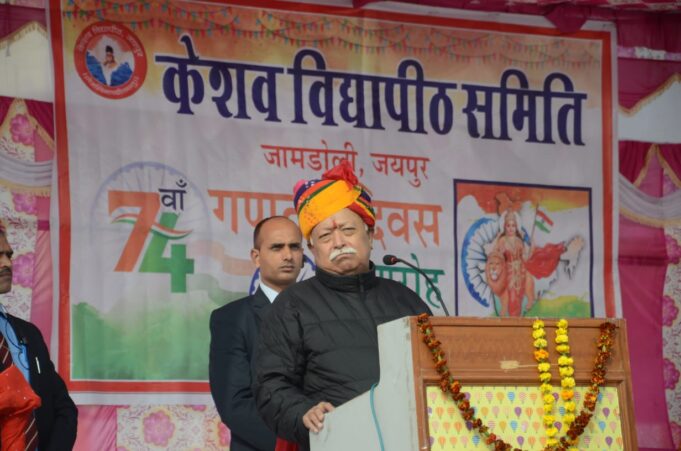 జయపూర్ : గణతంత్ర దినోత్సవ సందర్భంగా కేశవ్ విద్యాపీఠ్ లో ఏర్పాటు చేసిన సభలో రాష్ట్రీయ స్వయం సేవక్ సంఘ్ సర్ సంఘచాలక్ శ్రీ డా: మోహన్ భాగవత్ గారు పాల్గొన్నారు. ఈ సందర్భంగా ఆయన మాట్లాడుతూ డా. బాబాసాహెబ్ రాజ్యాంగ సభ సంపూర్ణ మద్దతుతో ఏర్పడిన రాజ్యాంగాన్ని దేశ ప్రజలకు అర్పిస్తూ ఇప్పుడు...