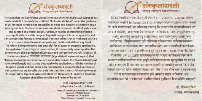 కేంబ్రిడ్జ్ విశ్వవిద్యాలయానికి చెందిన పరిశోధకుడు శ్రీ. ఋషి అతుల్ రాజ్ పోపట్ `పాణిని విశ్వసిస్తాం’ (In Panini We Trust) అనే పరిశోధన వ్యాసాన్ని ప్రచురించారు. డా. విన్సెంజో వెర్జియాని మార్గదర్శనంలో ఋషి ప్రచురించిన ఈ పరిశోధన వ్యాసం సర్వత్ర చర్చనీయాంశంగా, వివాదంగా మారింది. తన పరిశోధన వ్యాసంలో ఆయన పేర్కొన్న విషయాలు చాలా...