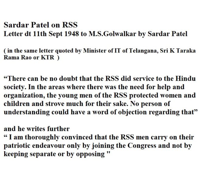 ఆర్ఎస్ఎస్ పై సర్దార్ పటేల్