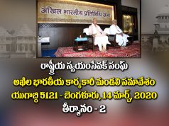 రాష్ట్రీయ స్వయంసేవక్ సంఘ్, అఖిల భారతీయ కార్యకారీ మండలి సమావేశం – యుగాబ్ది 5121, బెంగళూరు, 14 మార్చ్, 2020.
