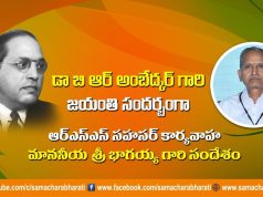 డా బి ఆర్ అంబేద్కర్ గారి జయంతి సందర్బంగా ఆర్ ఎస్ ఎస్ సహ సర్ కార్యవాహ మాననీయ శ్రీ వి భాగయ్య గారి సందేశం.
