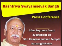 అయోధ్య కేసులో సర్వోన్నత న్యాయస్థానం ఇచ్చిన తీర్పుపై రాష్ట్రీయ స్వయంసేవక్ సంఘ్ ప్రతిస్పందనను సర్ సంఘచాలక్ డా. మోహన్ భాగవత్ వెల్లడించారు. డిల్లీలో లో జరిగిన పత్రిక విలేకరుల...